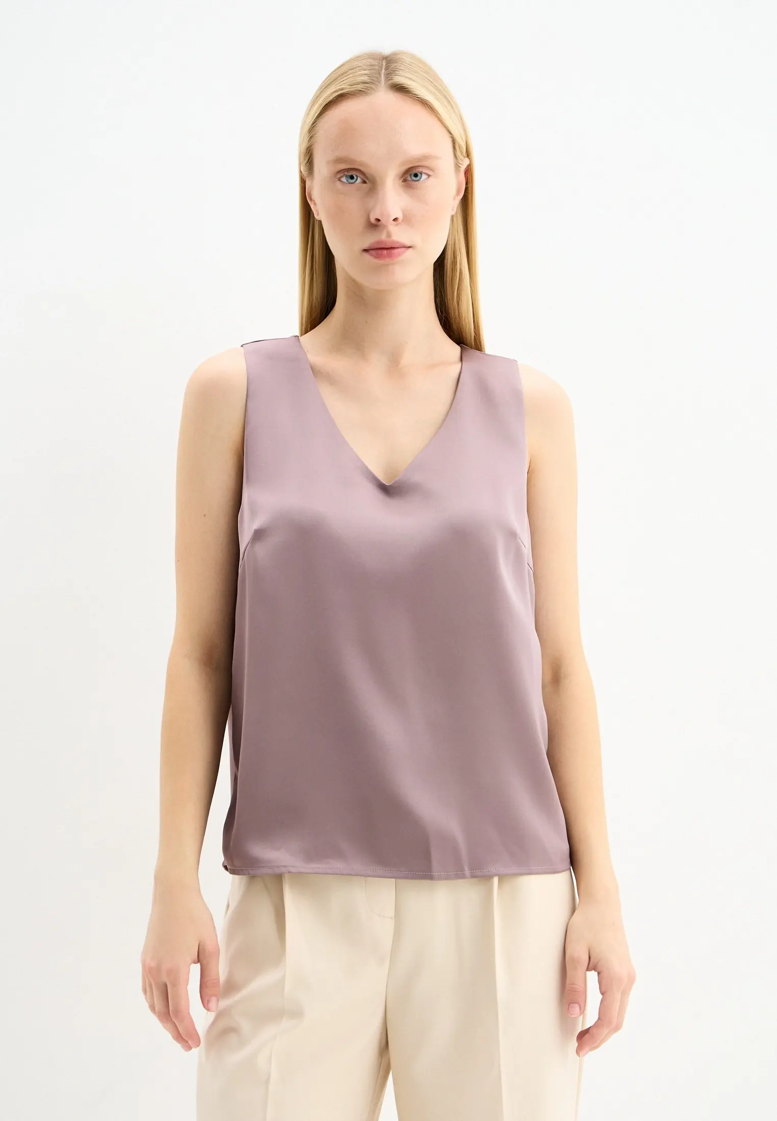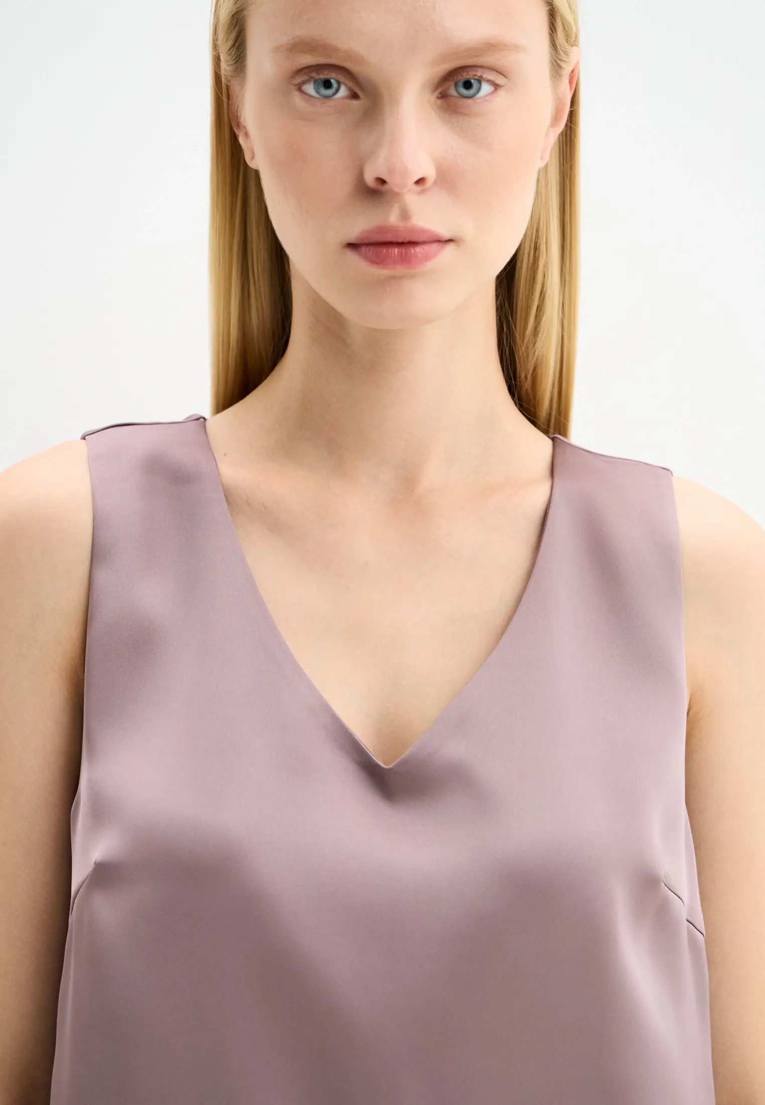 Полуприталенный силуэт, широкие бретели — простой и элегантный топ из плотного сатина можно носить круглый год. Выполнен из матового искусственного шелка с гладкой текстурой и благородным блеском. Такая ткань плотная, почти не мнется.